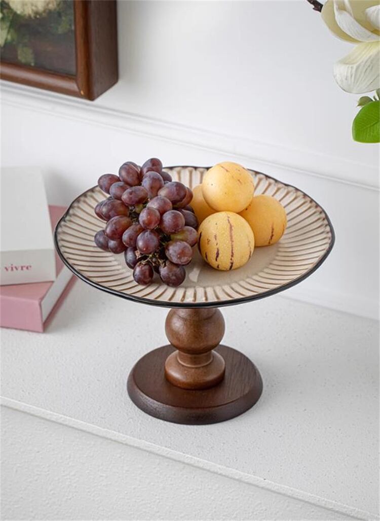 木製高脚トレー セラミック仕上げ お菓子盛り皿 玄関・リビング飾り ヴィンテージ風インテリア雑貨