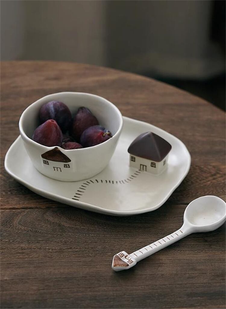 磁器製燕麦碗&デザートプレートセット