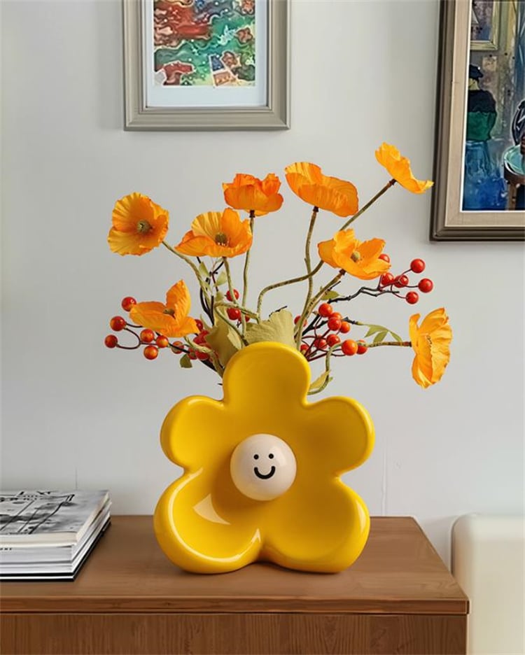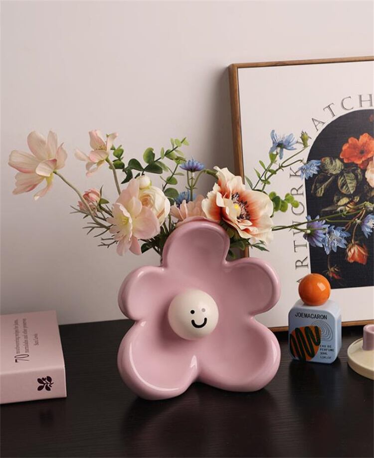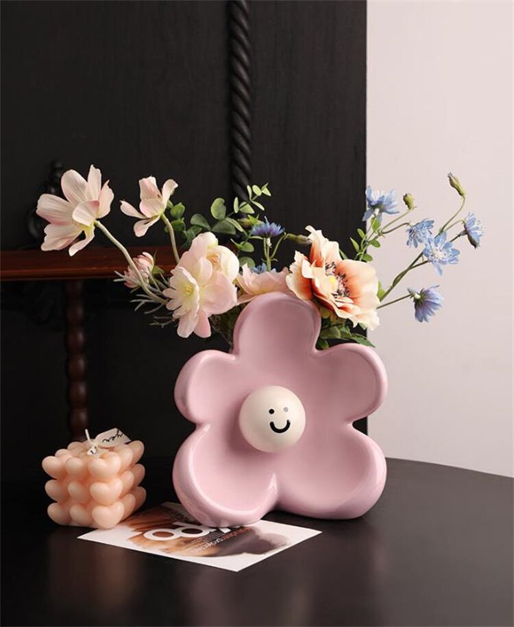 手描きの花びら模様が立体的に浮かび上がり、お花を挿すだけで空間に元気を運びます。